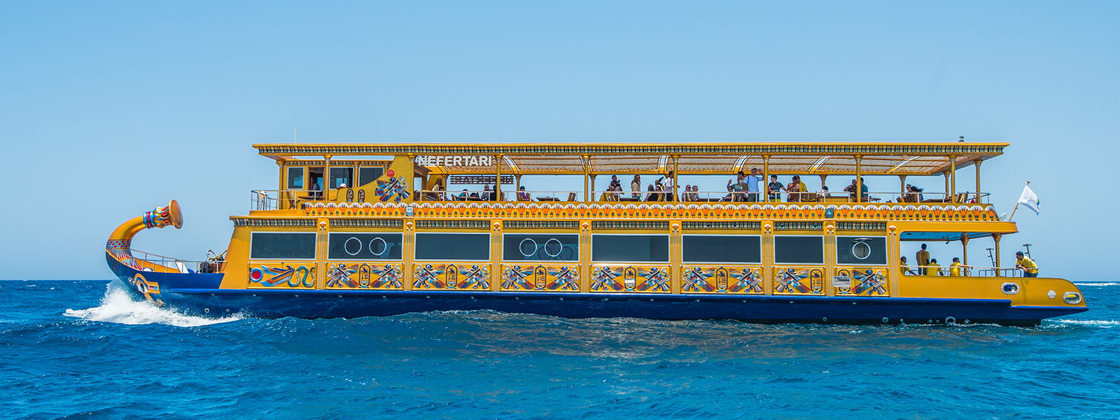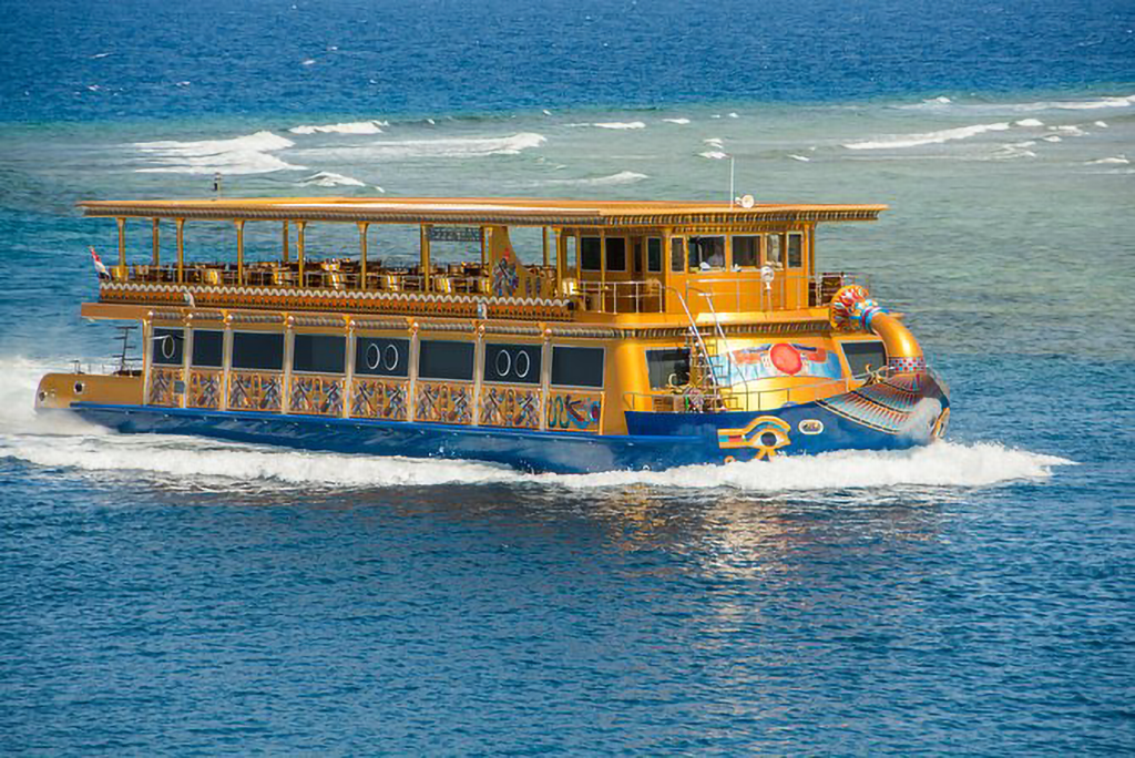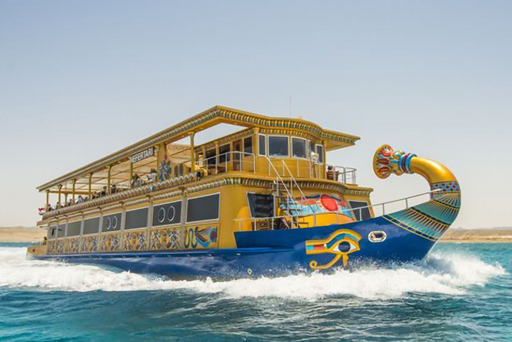 modern Port Ghalib Marina to board the distinctive Pharaonic-style Nefertari Submarine.