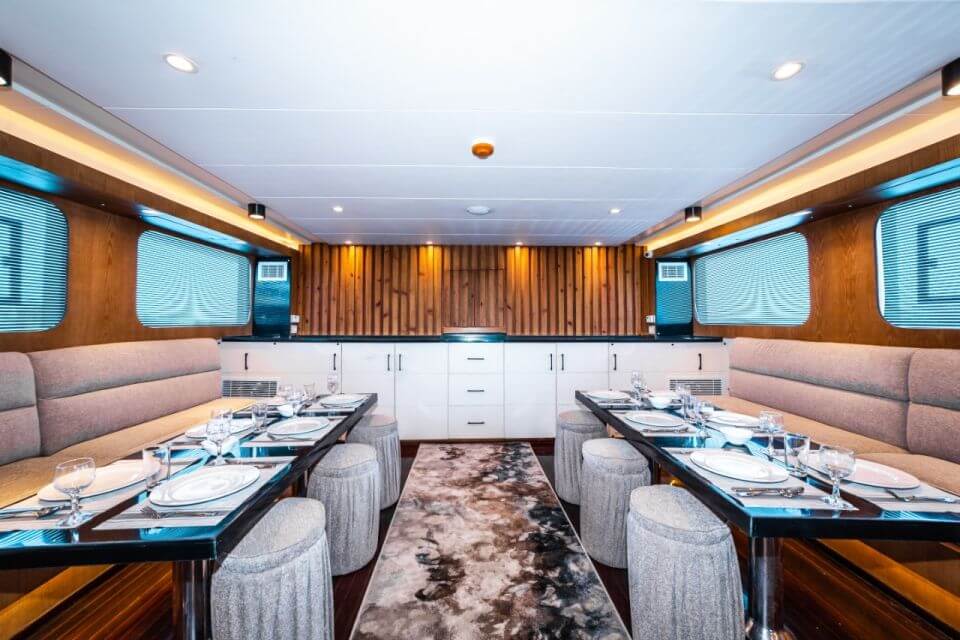 luxury boat, receive refreshments, and listen to a brief introduction. Settle into your room and enjoy the sea